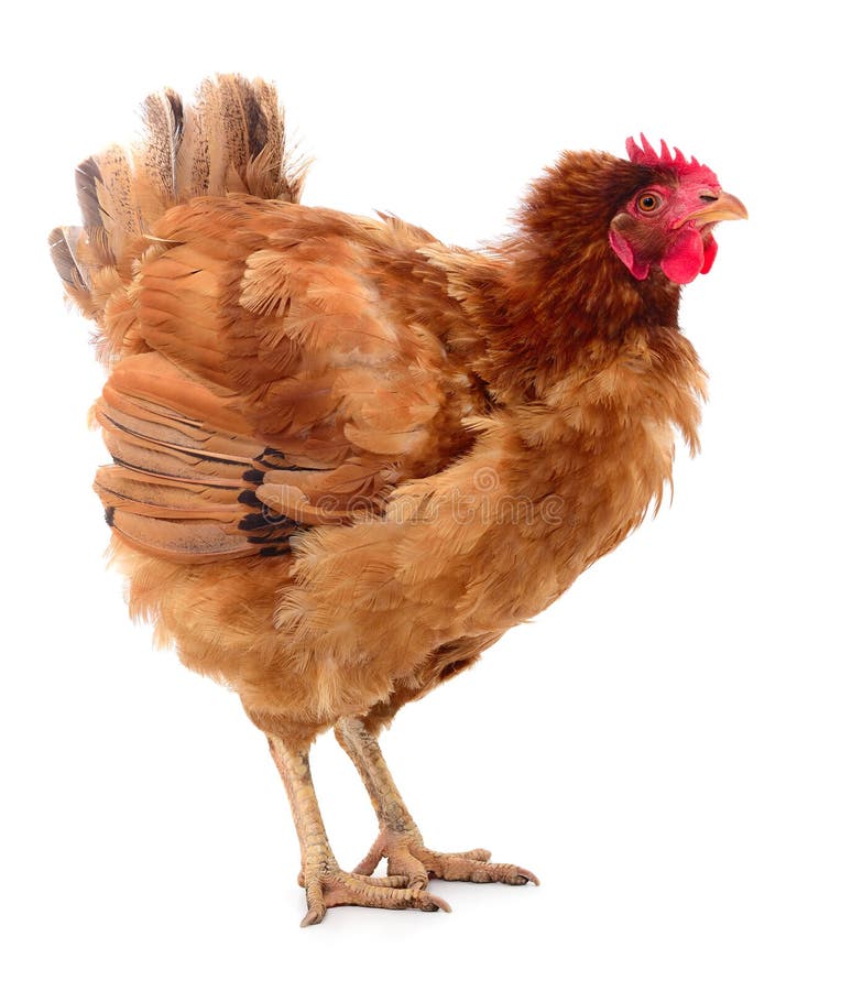 Brown una gallina. Giovane gallina marrone su fondo bianco