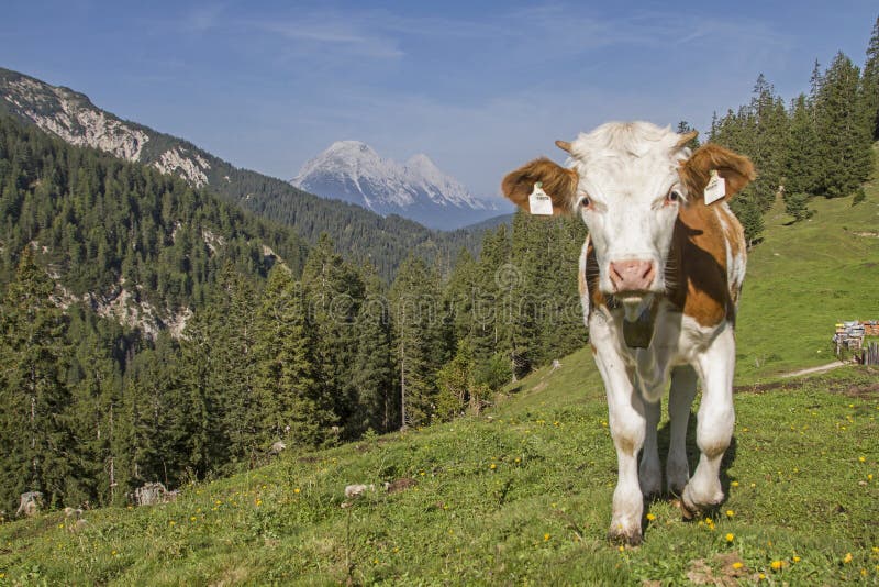 Estate in montagna. Giovani bovini al pascolo - vitello in un prato all'Oberbrunnalm, nelle montagne del Karwendel