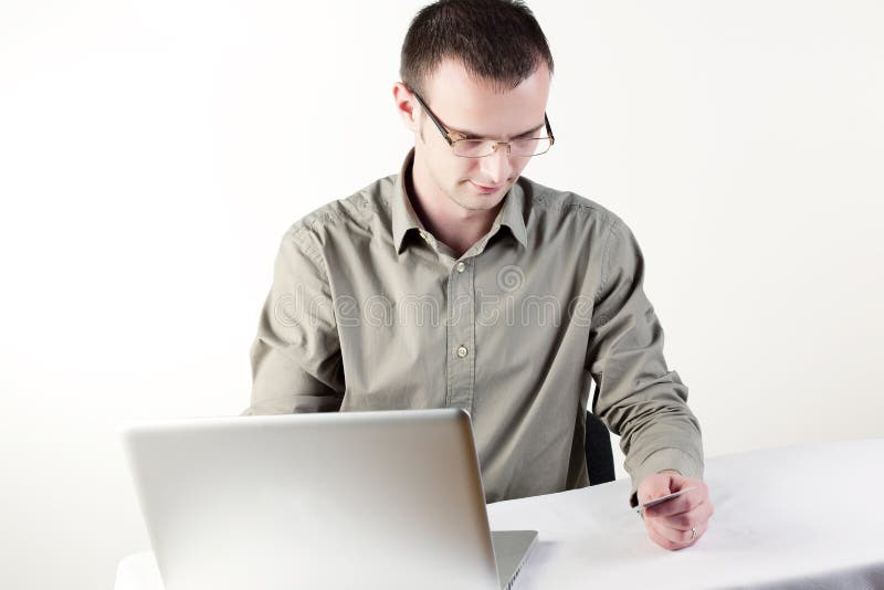 Uomo che fa shopping online. Vendi. Compra