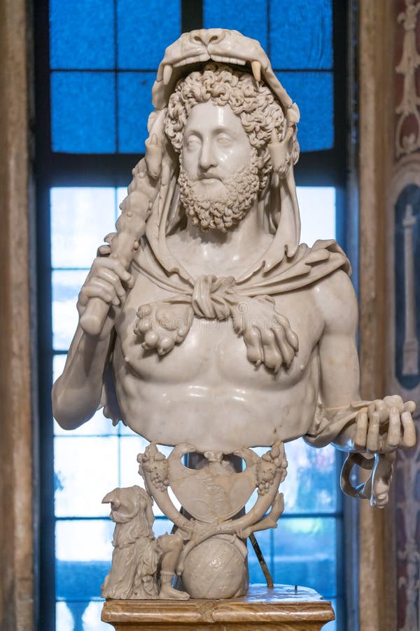 Famoso busto dell'imperatore Commodo come Ercole nei Musei Capitolini, Roma