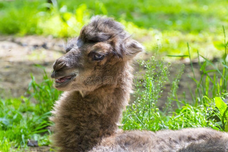Ritratto di un bambino del cammello. Testa di un vitello del cammello two-humped o battriano (bactrianus del Camelus)