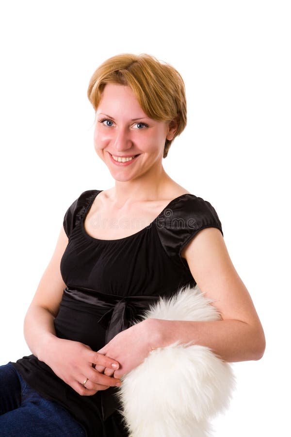 Giovane donna felice e sorridente isolata