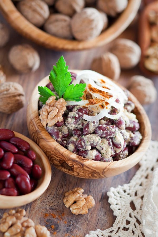 Lobio. Insalata di fagioli rossi (cucina georgiana), messa a fuoco selettiva