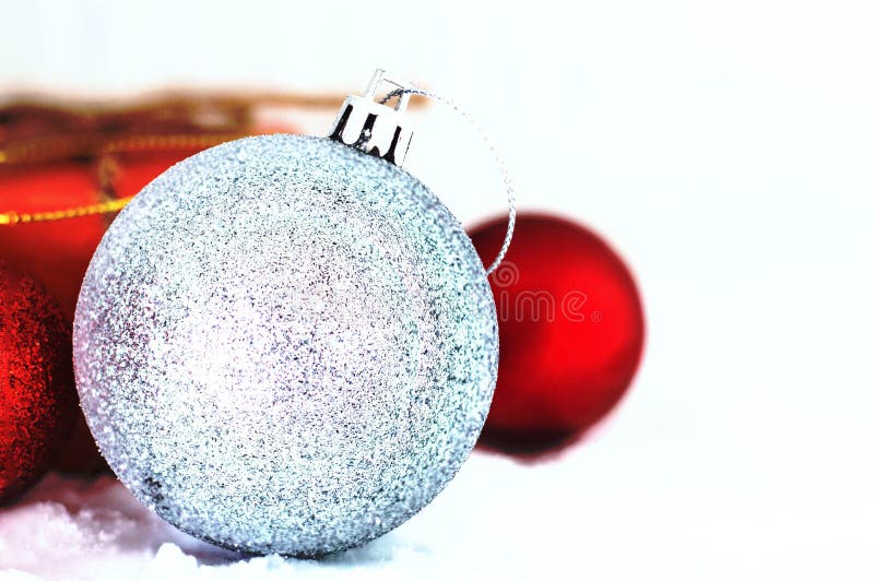 Palla su neve bianca. Palla d'argento con i regali su una neve bianca